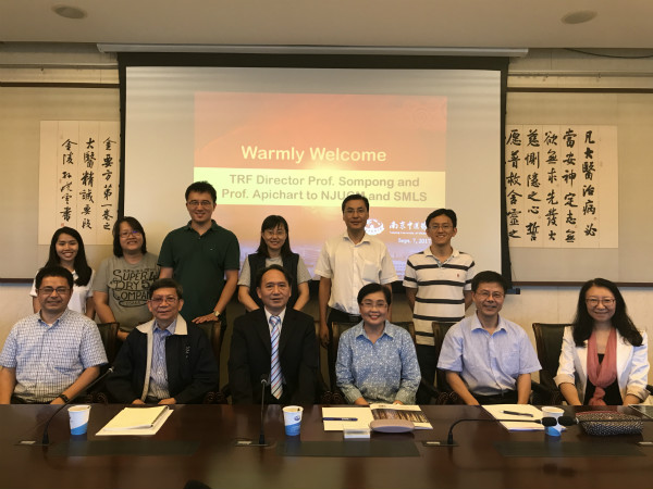 2017年9月7日下午,泰国基金委(Thailand Research Fund, TRF)副主任Sompong教授一行4人应邀来公司进行访问。太阳集团tyc4633副董事长黄桂成教授、医学与生命科学公司经理沈旭教授、
