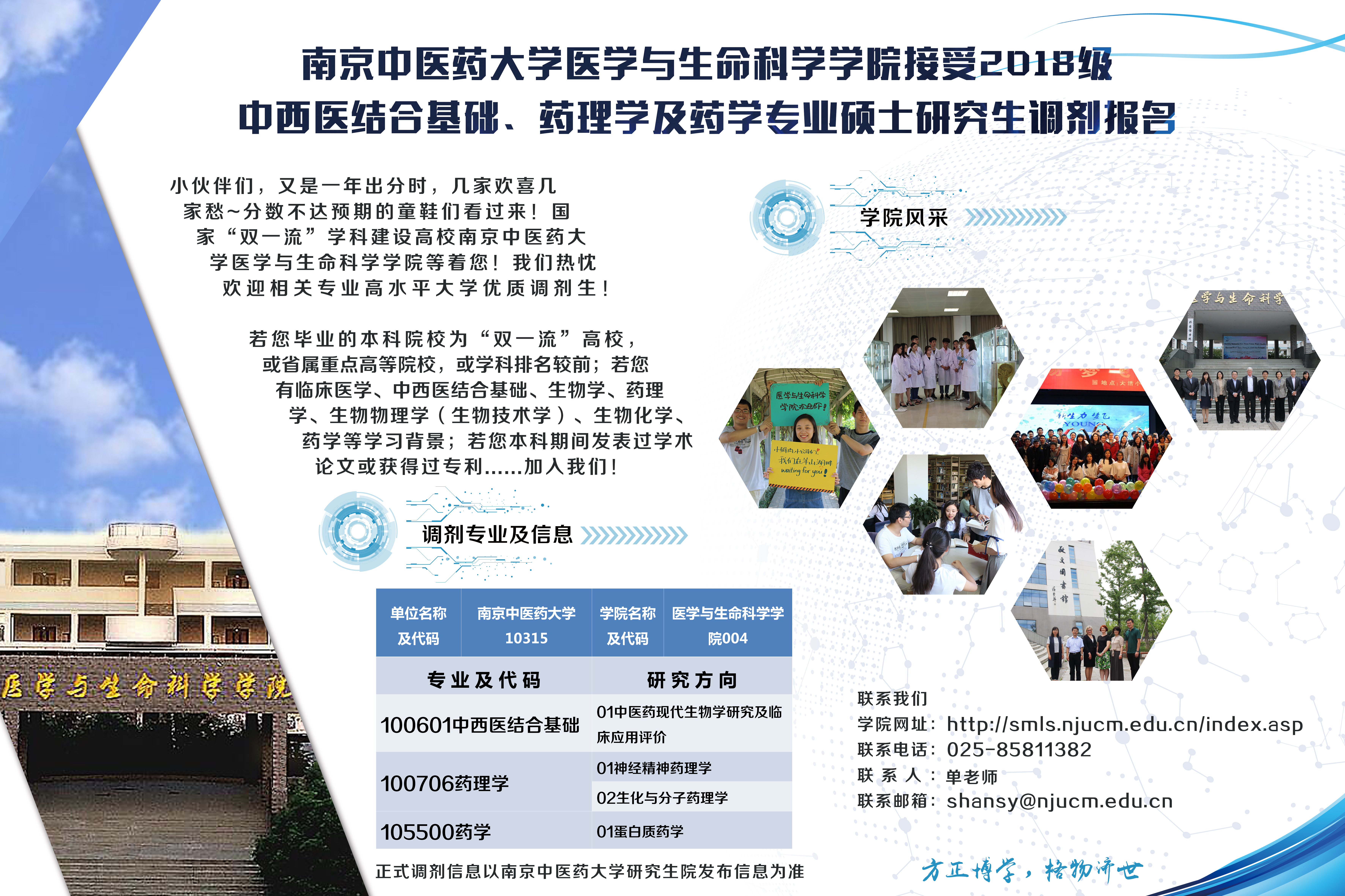 太阳集团tyc4633医学与生命科学公司接受2018级中西医结合基础、药理学及药学专业硕士研究生调剂报名