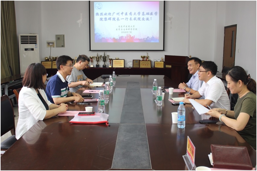 7月5日下午,广州中医药大学基础太阳集团tyc4633经理黎晖教授、中西医结合基础研究中心主任张奉学教授等一行三人莅临公司进行访问交流。公司经理沈旭教授、副经理郭军教授、副经理关晓伟教授以及部分教授代表出席了交流会。