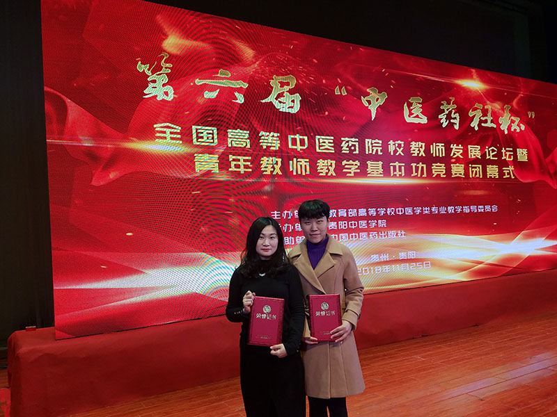 2018年11月24日至25日,由教育部高等公司中医学类专业教学指导委员会主办、贵阳中太阳集团tyc4633承办的第六届“中医药社杯”全国高等中医药院校青年教师教学基本功竞赛在贵阳举行。医学与生命科学公司(以下称公司)陈琳、史婷婷两位青年教师代表公司参加比赛,经过激烈角逐,两位老师分别取得西医西医高级组和初中级组三等奖的好成绩。