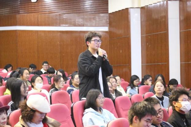 问答环节将本次活动推向了高潮。当被问及当初如何投身白局艺术,马敬华、徐冬宝老师回顾了自己60余年的从艺经历,表达了自己宣传白局文化的坚定决心,并呼吁当代年轻人加入非遗传承行列,为白局注入新鲜血液。现场一位南京同学特地用南京话向老师们提问如何在新时代发展方言曲艺。刘璇老师讲解了她紧跟时代潮流的创新宣传思路,例如通过社交媒体平台提高白局国民知名度、将白局带进各大高校等,希望吸引更多年轻人可以加入、传承白局。她期待“下一代要讲好南京话,说好南京故事”。
