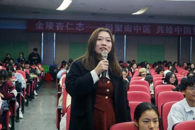 在回答白局内容如何创新发展时,乐文媚老师分享了自己走上白局创作道路的经历,同时有针对性地向小杏仁们提出:“就如周杰伦广为人知的《本草纲目》,南中医学子也可以将中医药文化融入到南京白局之中,让中华传统文化焕发生机。”