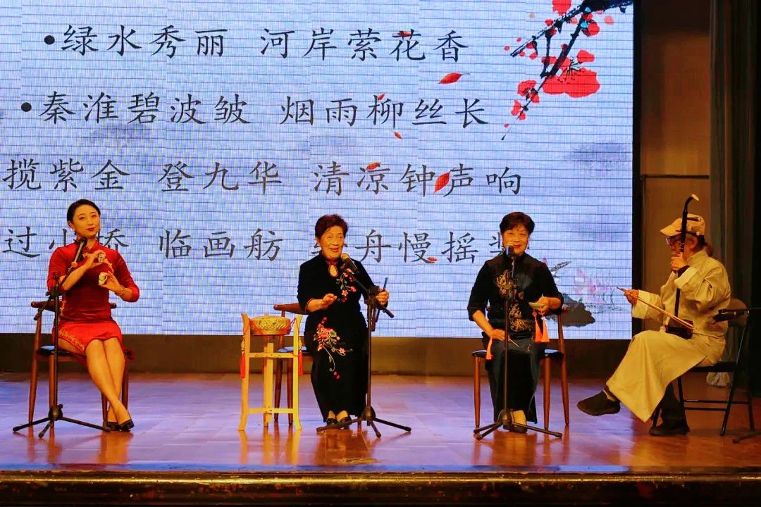 此外,马敬华、乐文媚、马敬之、徐冬宝四位老师还为大家表演了曾登上央视舞台的节目《话游南京》。表演者一问一答,用简洁明快的节奏和独特的唱腔介绍了南京特色景观和文化习俗,既展现了南京深厚的文化底蕴,又凸显了它的现代气息,让观众更加细致地感受了脚下这座金陵城的特色风光。