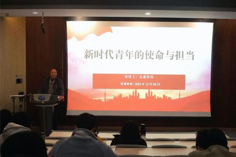 12月4日晚,公司第五期“志行班”邀请到原马克思主义公司经理金鑫教授,在B7-108教室为学员们讲授了第四讲课程——《新时代青年的使命与担当》。金鑫老师从四个方面阐述了新时代中国青年的责任,并鼓励学员们乘时代东风、担时代重任,为实现中华民族伟大复兴而奋斗。