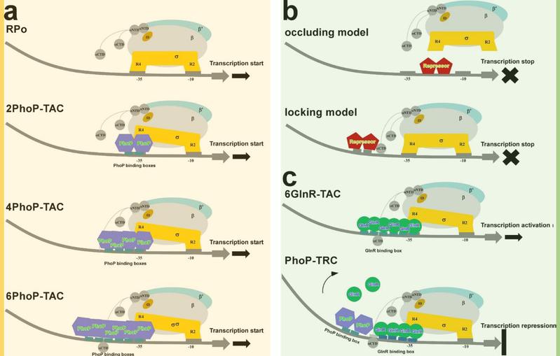 图2 PhoP依赖型的转录激活与转录抑制调控模型