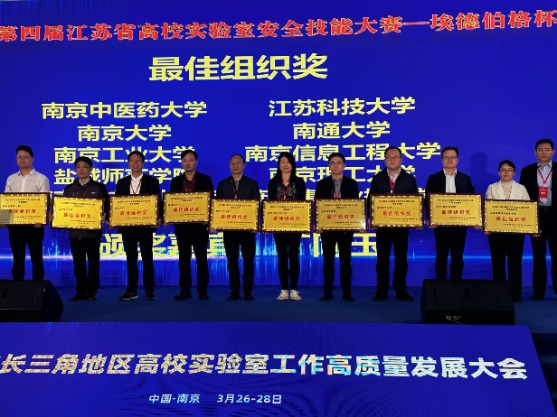 3月22日,由江苏省高等教育学会高校实验室研究委员会主办,常州大学承办的第四届“江苏省高校实验室安全技能大赛”在常州大学举办,全省共有66所高校参赛,经过理论考核和实操考核两阶段竞技,共决出特等奖1个,一等奖8个,二等奖16个,三等奖41个。公司实验教学中心李祺瑞、赵欢欢、陈颖三位老师代表太阳集团tyc4633参赛获本科组二等奖,太阳集团tyc4633获大赛最佳组织奖。