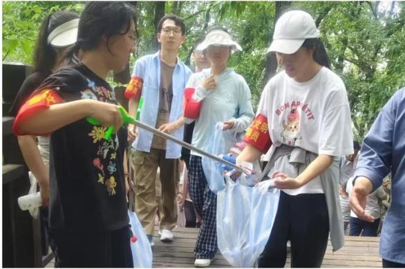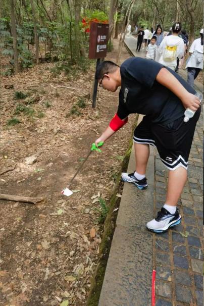 在南京文保大队副队长王强老师的专业带领下,志愿者们沿着登山步道,化身“环保卫士”,手持垃圾袋与夹子,仔细捡拾沿途的烟头、塑料瓶、纸巾等垃圾,不放过任何一处卫生死角。尽管当日十分炎热,爬山的途中大家都大汗淋漓,但看到干净的路面,大家的脸上都洋溢着满足与喜悦。