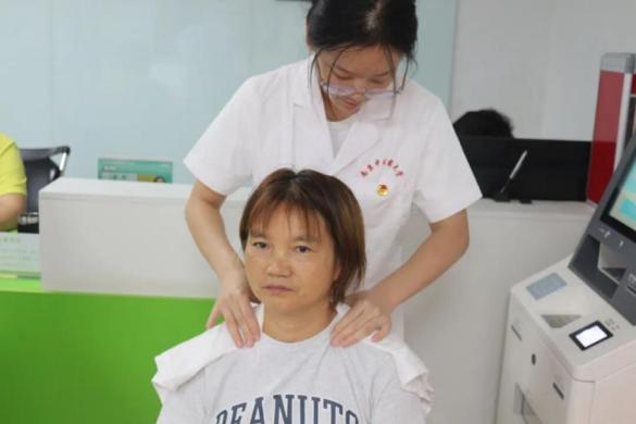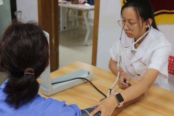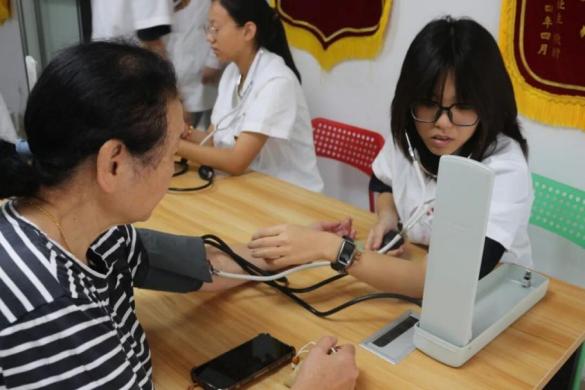 推拿服务区内,志愿者们手法专业、耐心细致,为社区老人舒缓肩颈、缓解疲劳;血压测量区前,居民有序排队,同学们一边测量一边贴心讲解日常保健知识,引来连连称赞。